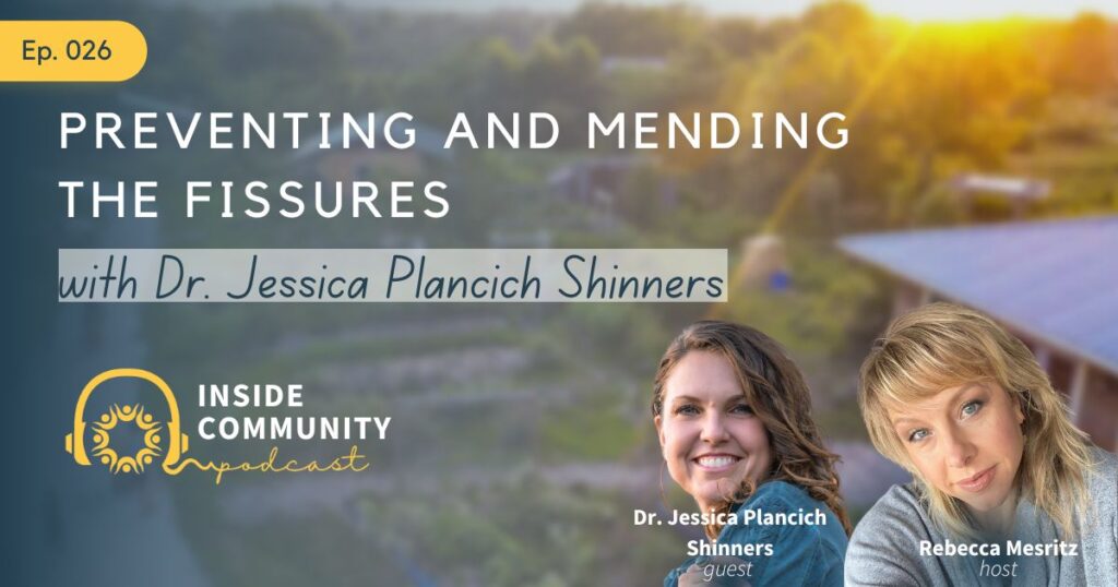 Henlow communitarians and welcome back to the inside community podcast. I’m your host Rebecca misreads. Well, we have reached the final episode of our second season, and it has been such an amazing journey. I just want to start by saying I am so grateful to each of you for listening along. We’re going to take a bit of a break after this episode while I have my baby. And just a side note, a big thank you to those of you who have sent your well wishes and have been holding my family and your thoughts and prayers through this portal. That said, I am happy and excited to announce that we are planning a season three to begin in the fall. And we’ll hopefully be doing some recording over the summer at a few different community based events and gatherings, you should definitely try to check them out. One is the full bloom event hosted by the Emerald village in San Diego, California, and the Twin Oaks communities conference in Virginia. I’ll have links to both of those in the show notes so you can learn more about them. During the break, I hope you’ll go back and get caught up on any episodes that you might have missed from this or last season. Or just have a re listen because there’s just so much beautiful wisdom shared by my incredible guests. And we will be looking for sponsors for our next season. So if you have a business that you would like to promote on this podcast, please reach out to us we would love to partner with you. The inside community podcast is meant to be an exploration of the realities of intentional community and collaborative culture. And for me, this means looking unabashedly at both the beautiful and the messy parts of what it is to choose this path. This season I really endeavored to cover the mess and the toughness and the grit. When I started this podcast even as a 10 year community veteran, I still had so many questions about how to handle the hard parts. And I think it’s really important not to sugarcoat or gloss over the fact that sometimes building community can be very hard. But honestly, I feel like that’s one of the things that true communitarians really love about it. It gives us lots of opportunities to learn and grow, become better versions of ourselves and create a model for the world as we endeavor to build living laboratories. This season, we’ve talked about intimacy and equity, having babies raising families, aging and death. We’ve talked about the challenges of designing both physical architecture and governance. We’ve talked about top down leadership structures and cults. If there’s one thread that seems to carry through all these topics, and really influence how any issues get solved. I think it’s actually the overarching theme of this show. Ultimately, I believe that success in any community or organization comes down to the social architecture, and how we handle interpersonal conflict and repair. To have this discussion with me today, I’m bringing on my dear sister, friend, co founder and collaborator of many years Dr. Jessica plants at shinners. We’re going to explore what it takes to maintain and rebuild connection when inevitable fissures occur. Here’s a few words from our generous sponsors and then we will jump right in.