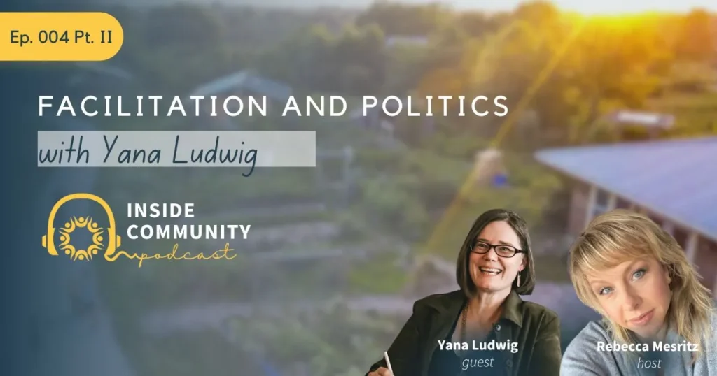 Inside Community Podcast host Rebecca Mesritz is a community builder living in Williams, Oregon. In 2011, Rebecca co-founded the Emerald Village (EVO) in North County San Diego, California. During her ten years with EVO, she supported and led numerous programs and initiatives including implementation and training of the community in Sociocracy, establishment of the Animal Husbandry program, leadership of the Land Circle, hosting numerous internal and external community events, and participation in the Human Relations Circle which holds the relational, spiritual and emotional container for their work.Â