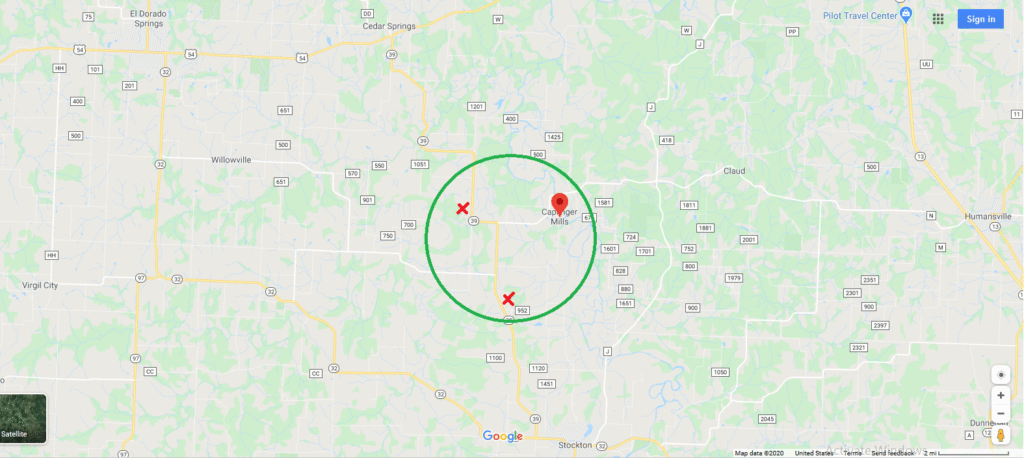 Countryside locations with significant distance from urban centers.