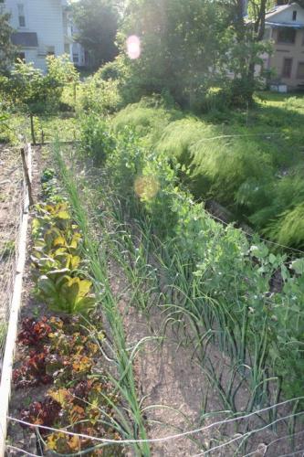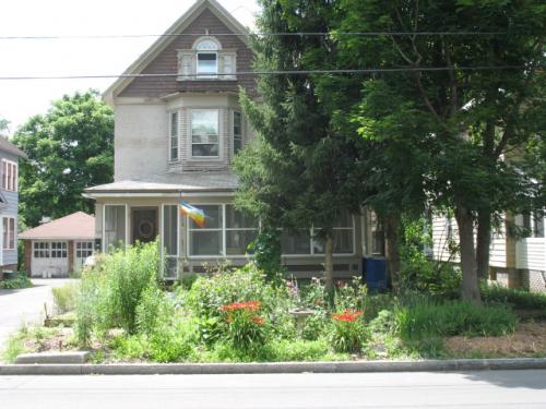 The Bread and Roses Collective provides a model of cooperative living, ecological sustainability, and affordable housing in the heart of the city. We have two houses linked by a half acre of land in the progressive Westcott neighborhood of Syracuse, NY, close to Syracuse University and the State University of NY College of Environmental Science and Forestry. One house is a beautiful 150 year-old historical house on a quiet residential street in Syracuse, NY. The other is over 120 years old, newly renovated with a kitchen designed for a collective, and on the main thoroughfare of the neighborhood, Westcott St, with a bus stop right in front of the house. We practice the idea of “Food, not Lawns” with much of our yard converted to intensive vegetable gardens and edible landscaping, a bathtub salad garden on our driveway, and backyard raised bed production over approximately 2500 square feet. We have a six-bin compost system, apple and pawpaw trees, berry bushes, a growing native plant population, and many storm water retention features. We grow most of our own vegetables June-October, and preserve many foods for the winter such as jams, ketchup, salsas, pickles, and tomatoes.