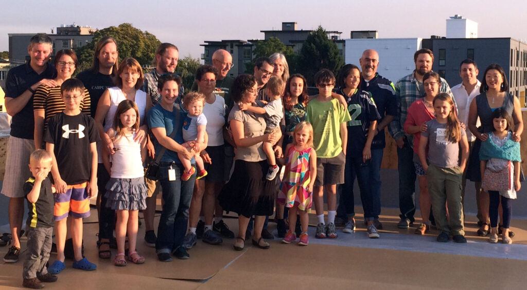 We are a very diverse community in an incredibly dense neighborhood in Seattle – Capitol Hill. We have all of our 9 households with children between ages 5 and 19 years old and our adults range from mid-30’s to mid-70’s. We have 9 units on 4500sf lot (smaller than the typical Seattle single family lot). Our property is located 3 blocks from light rail and has great bus access. We built with high Built-Green and LEED guidelines achieving as many high-performance sustainability metrics for energy and water usage as much as was financially feasible both now and planning for future upgrades. We broke ground in late October, 2014 and took occupancy in June, 2016. Please note we are a unique hybrid model. All members paid a minimal joining fee of $30,000 to join our LLC. The members built the apartment building and we are self-managed. We pay market rate rents which will be kept artificially as stable as possible, rather than increasing with the market. This is intended to entice longevity. In 2024 we had our first household turn-over since move in. It’s unlikely we’ll have any openings but to be notified please join our mailing list on our website. That is where any short-term rentals or long-term residencies would be announced.