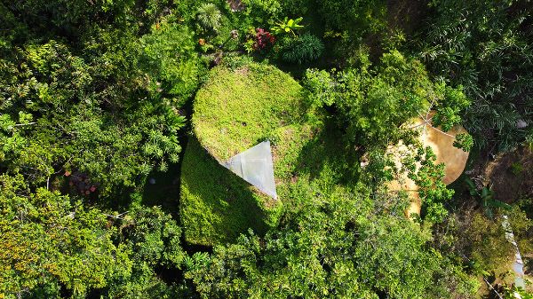 In summary, a sculptural house in the Bamboo Village comes with 5-to-8 hectares of land (1 hectare private glade, and the equivalent of 4-to-7 hectares distributed throughout protected forest surrounding the glade, a reserve with water springs, and the groves).