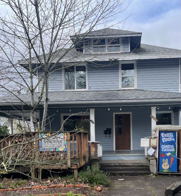 Our homes have access to a social justice library, endless craft supplies, and beautiful outdoor spaces. Members have their own rooms with access to furniture if desired. We compost, recycle, and always try to buy sensory friendly and fragrance-free house products. Housemates prepare up to 6 weekly house dinners according to the dietary needs of current members in one of three industrial kitchens. We sometimes eat family-style, sharing food and tales of our days. After dinner, we love to watch movies on our projector, hang out in the yards, or have quiet work parties.