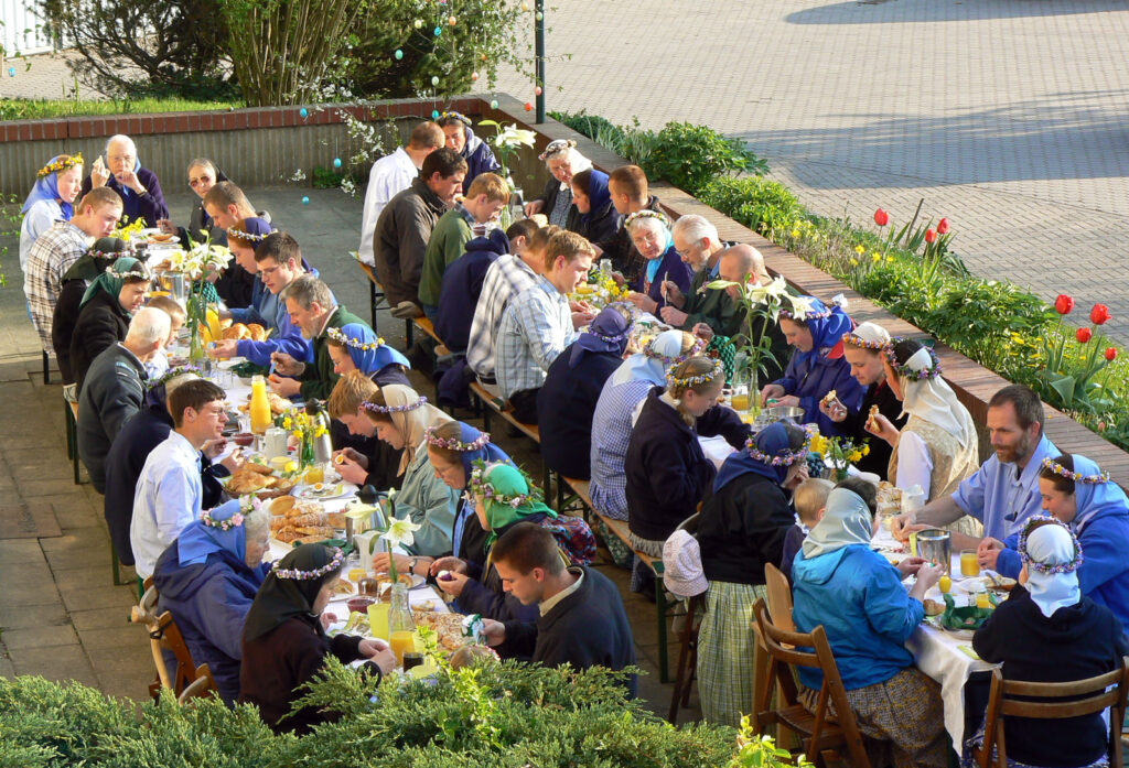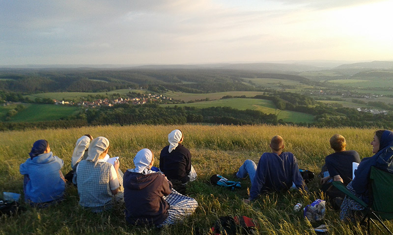 Our small group of Bruderhof members is made up mostly of students from our other communities, here studying traditional trades or at local universities. Some of us do manual work, while others work on the German content for the Bruderhof’s publishing house, Plough. Our settlement is situated at the end of a residential street on the edge of the village of Bad Klosterlausnitz, which is about equidistant from Frankfurt and Berlin along a major autobahn exchange. Holzland is a community house with several outbuildings and a garden. Holzland Bruderhof is a living, working intentional community, not a retreat center or spiritual getaway. During your visit you’ll be hosted by one of our families and participate in our daily life, from joining the workforce to taking part in meals and worship. We are convinced that a life in church community is the greatest service we can offer humanity and the best way we can proclaim Christ. To be part of the Bruderhof movement is not a lifestyle choice. It is an answer to Jesus’ insistent call to humankind as expressed in the Gospels, especially the Sermon on the Mount. While we follow the communal traditions of the early church, we believe our way of life is a compelling answer to the problems of contemporary society, with its emphasis on wealth and self and its resulting isolation, conflict, and inequality. Through community, we have experienced Christ’s transforming love. He makes the impossible possible: for ordinary and flawed men and women to live together in forgiveness and mutual trust, as brothers and sisters. It is his Spirit that calls Bruderhof members to a life of love where work, worship, mission, education, and family life are brought together into a single whole.