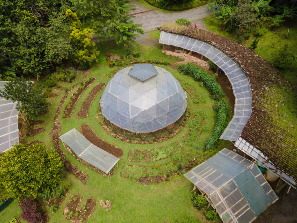 La Ecovilla is a regenerative and resilient community, inspired by the idea of living in harmony with nature and with each other, understanding that growth does not have to be destructive, but rather regenerative, while our place in the world stills guarantees to meet our basic needs: water, food, a roof over our heads and energy. The land where La Ecovilla was developed used to be a cattle farm, until it began to transform into an ”edible forest” in 2010 by planting fruit trees and edible plants before building the roads and general services, which were ready by 2012, allowing 43 families from 29 different countries to build their homes in La Ecovilla.