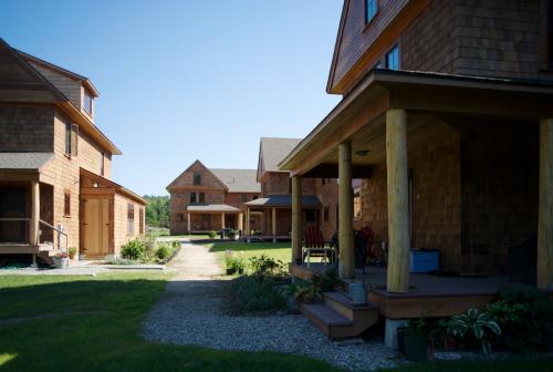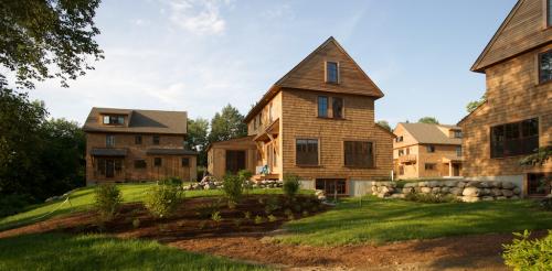 Nubanusit Neighborhood & Farm is a cohousing community in Peterborough, New Hampshire, located in the Monadnock region of the Granite State, just 90-minutes from Boston. Our neighborhood consists of 29 environmentally-designed homes; a spacious Common House; professional office space in a renovated historic farmstead; an organic farm; woodlands with walking trails; and a pond for swimming and skating. The neighborhood is located on 113 acres along Nubanusit Brook, about a one-mile walk (sidewalks) from the center of town, a thriving community made famous by playwright Thornton Wilder’s ‘Our Town’ written while he was a Fellow at nearby MacDowell. We are 29 households aged from toddlers to 90+ years. We work from home, commute, and are retired. We attend public, private and home-school. We own our homes (occasionally a rental is available). We value sustainability, community, farming, relationships and living lightly on the earth. A single-family home in our neighborhood is LEED Platinum certified (US Green Building Council); All of the buildings are constructed to the same rigorous environmental standards and use less than half the energy of typical houses. Our architect-designed, New England farmhouse-style homes have front porches and are sided with red cedar shingles. Each home is super-insulated with triple-glazed windows, infrastructure for solar hot-water collectors, and natural, nontoxic materials chosen for quality and durability. The entire neighborhood is heated by a central wood-pellet fired heat plant. Hardwood and tile floors are used throughout the homes; the interiors are light, airy, and spacious. Single-family and Duplex units have first floors featuring a kitchen and open-concept living/dining room with a full mudroom entry and half bath/laundry room. Single family homes have a first floor master bedroom and full bath. Duplex second floors have a master bedroom, full bath, and additional bedroom(s). First floor quad units have open concept kitchen/dining/living room and large bedroom and sunroom. Upper quad units have main level open concept kitchen/dining/living room and 3/4 bath and bedroom/office, and master bedroom and full bath on upstairs level. Private living spaces have views of woods, farm fields, or the river. We are a pedestrian-friendly neighborhood, with vehicles limited to the parking area at the periphery. Our farm includes fields for pasture, hay, vegetables, and fruits. There is also an apiary, layer chickens, and beef cattle and lambs raised for meat. Peterborough is a quintessential New England town located in a nature-lover’s region of mountains, ponds, rivers, and picturesque villages. Our town is a vibrant arts and cultural center, and is home to the world-renowned MacDowell. Peterborough has good public schools, as well as Waldorf and other private daycare, preschool, elementary, and high schools. https://www.nhcohousing.com/ https://www.facebook.com/nubicoho?