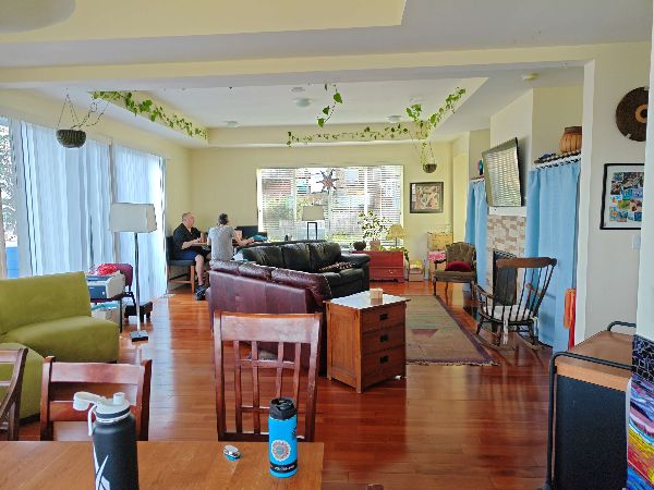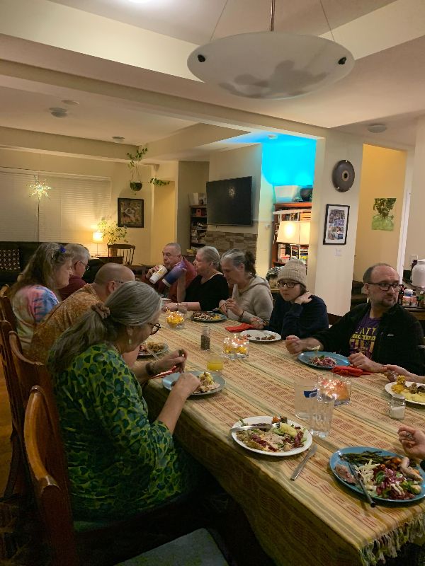 The residential members each rent a bedroom, while the room pricing sometimes making consideration of what individuals can afford. We pool and split the cost of food and utilities pretty equally, though we have capped the utilities cost for some on a tight budget. We live in a car-dependent neighborhood, and we now have a fairly formal car sharing arrangement, so we avoid owning more cars than necessary for our transportation needs. We share services like phone plans and subscriptions as efficiently as possible for maximum benefit. We have discussed before how much members want a greater degree of socialism, but this is what most of us are comfortable with. Some of us work very hard at soul-killing jobs, to save money for a dream, to support loved ones outside of the community, or for other reasons. Others pursue self-employment, or minimal employment, or employment that is fulfilling but less remunerative. And others are retired. Our degree of expense sharing allows this freedom of choice without creating resentments, and for now that seems more valuable than greater egalitarianism. If we were all doing similar work at a community business, we might choose differently. We do, however, have an ethos that “no one bleeds”. We have collectively supported members in the past through times of financial stress, and we would do that again.