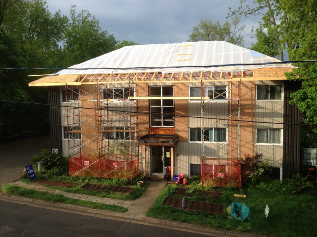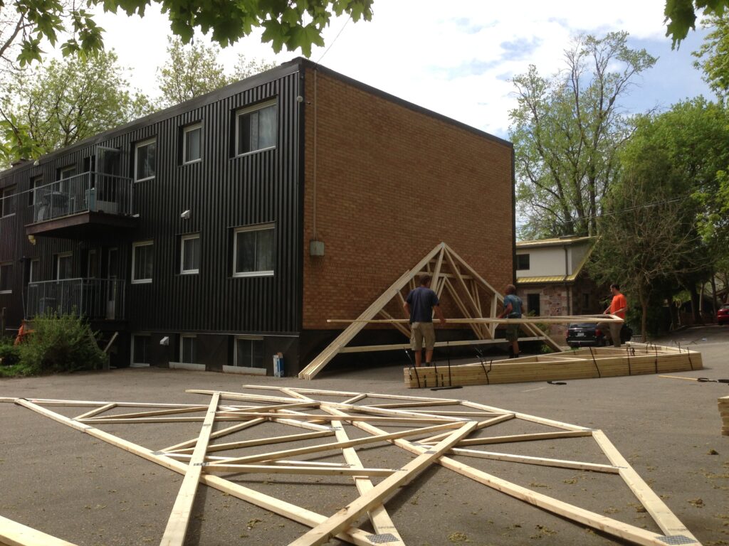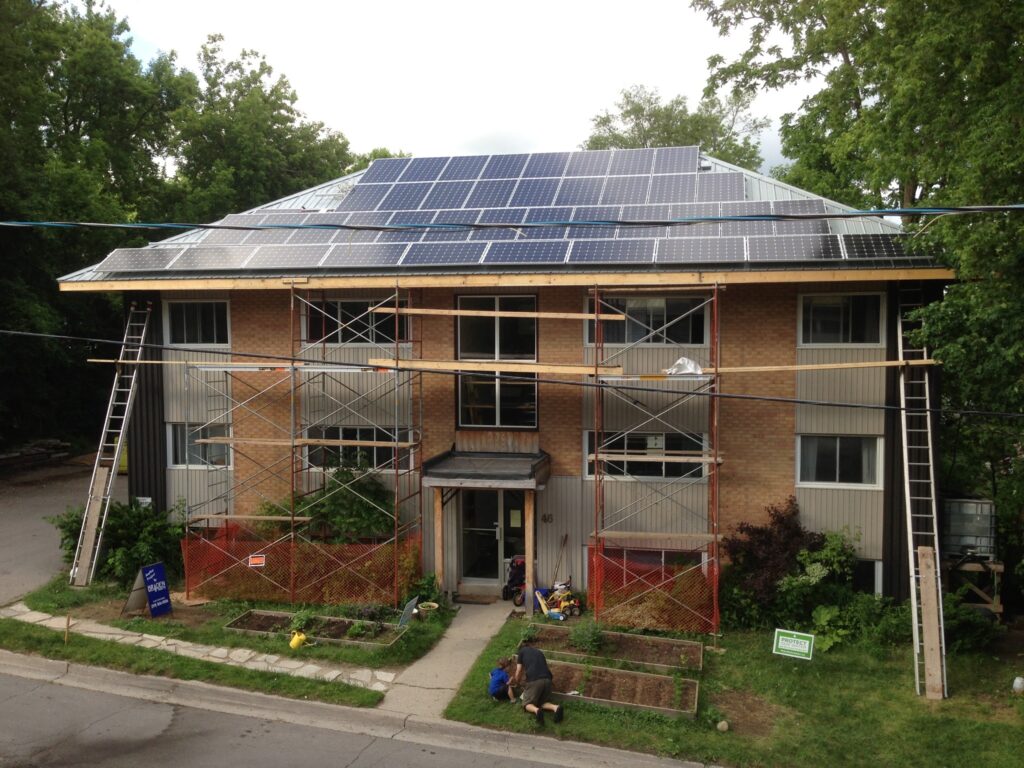 At the center of the Junction Village Guelph is the house that forms the heart which we fondly refer to as The Purple Cow. The house is located on a beautiful urban property close to downtown Guelph and is owned by The Junction Village Community Land Trust. In the house above we have created opportunities to explore co-living for long and short term stays in any income bracket. We envision this will eventually have a large community kitchen surrounded by micro units. Currently it has three private rooms and a shared room called the Alcoves. Eventually we hope that the Purple Cow will be co-operatively owned with examples of owned and rented spaces.