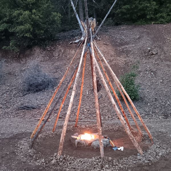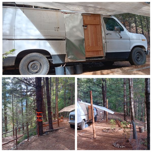 A place of simple, peaceful living, in close relationship with the 4 elements. Earth, air, water and fire. Gardening in small hillside terraces, to the sound of breeze through the trees, watering plants with saved snow, melted by fire or the Sun. Intentions and actions are to be in harmony with the moment of the day. To do what needs to be done with appropriate timing for the situation. No rush, never late, always present. I am beginning to build a small natural material structure, for the first fire resistant structure, made with most materials all found on-site. Rocks, dirt, wood and metal. The wood logs and other exposed wood will be covered with non burnable clay. The roof will be of metal, with a built in water catchment system. There are several secluded hillside spots for small, earth bermed living structures, which will be available to create, with and for select individuals. These will occur slowly by me, and/or when the right individual arrives. I, (T) and dog partner of 10 years, Ki (kee), live by ourselves on the semi-remote land, which I call TKi Land. My vision is to have select individuals, who are in alignment and agreement with certain guidelines that I have, to be creative contributors. Leaving behind you a trail of useful beauty…
