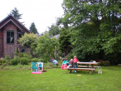 We are a cohousing community of 19 families occupying 18 detached residences (17 single-family units and 1 duplex). We are located a quarter mile from the Vashon town center. Vashon is an island in Puget Sound, and is about 40 minutes (by a combined bus or car and ferry trip) from downtown Seattle. We enjoy organic gardening, spontaneous potlucks and gatherings, commemorating our thirty year history, and tending our beautiful 13 acres.